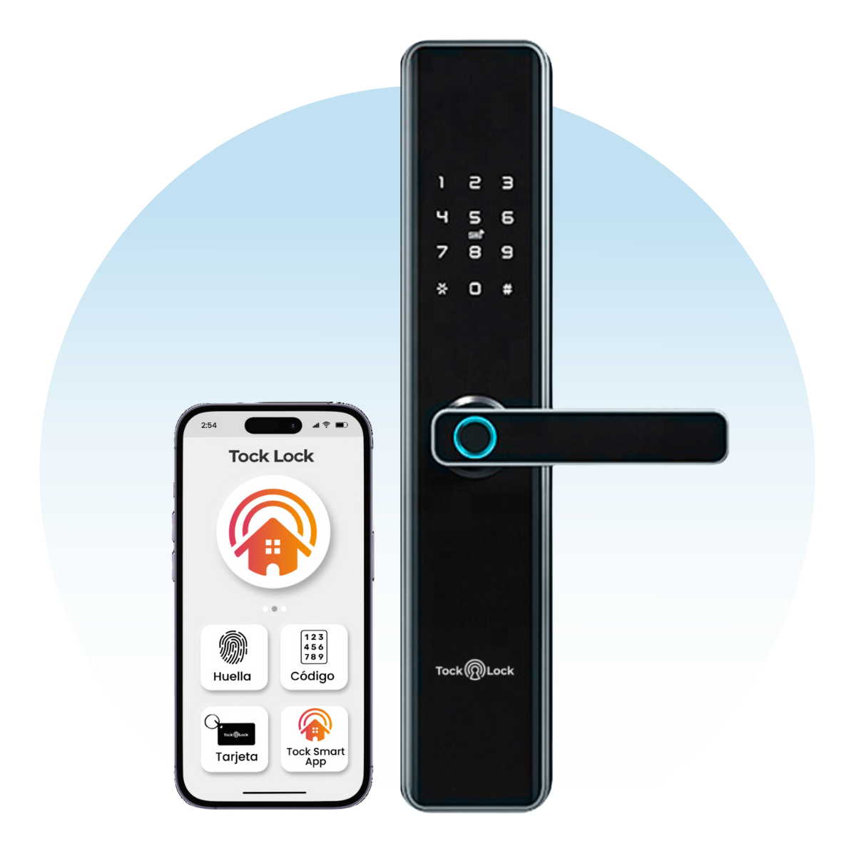 - 5 métodos de apertura (huella digital, tarjeta RF, aplicación Tock Smart / Wifi, código, llave física de emergencia).