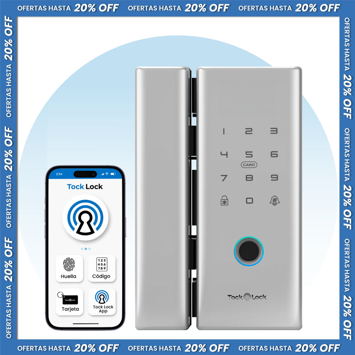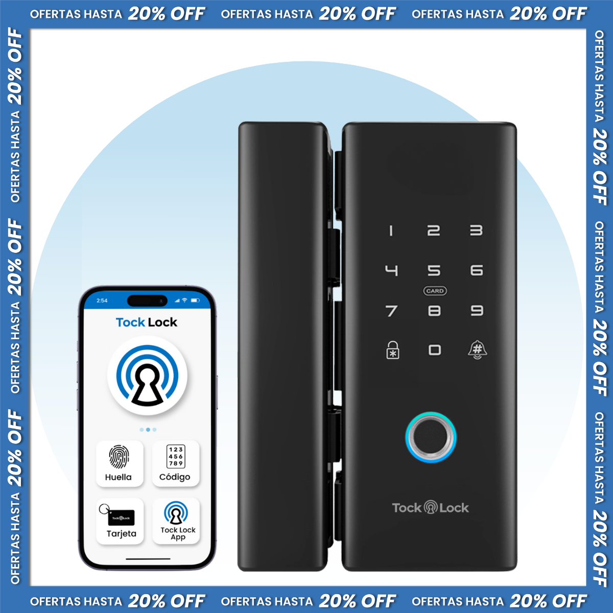 - 4 métodos de apertura (huella digital, tarjeta RF, aplicación Tock Lock / Bluetooth, código).